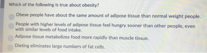 Solved Which Of The Following Is True About Obesity Obese Chegg Com